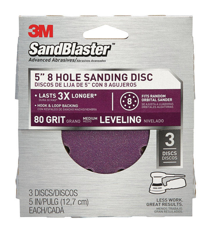 Use on 5" random orbital sanders only. Use on many surfaces, including wood, metal & fiberglass. Will not discolor your sanding surface. Press disc firmly with a slight twisting motion. Backing is coated with extremely durable cubitron mineral, stays sharp. Resulting in a more consistent sanded surface & longer disc life. Cuts 3 times faster & lasts 3 times longer.