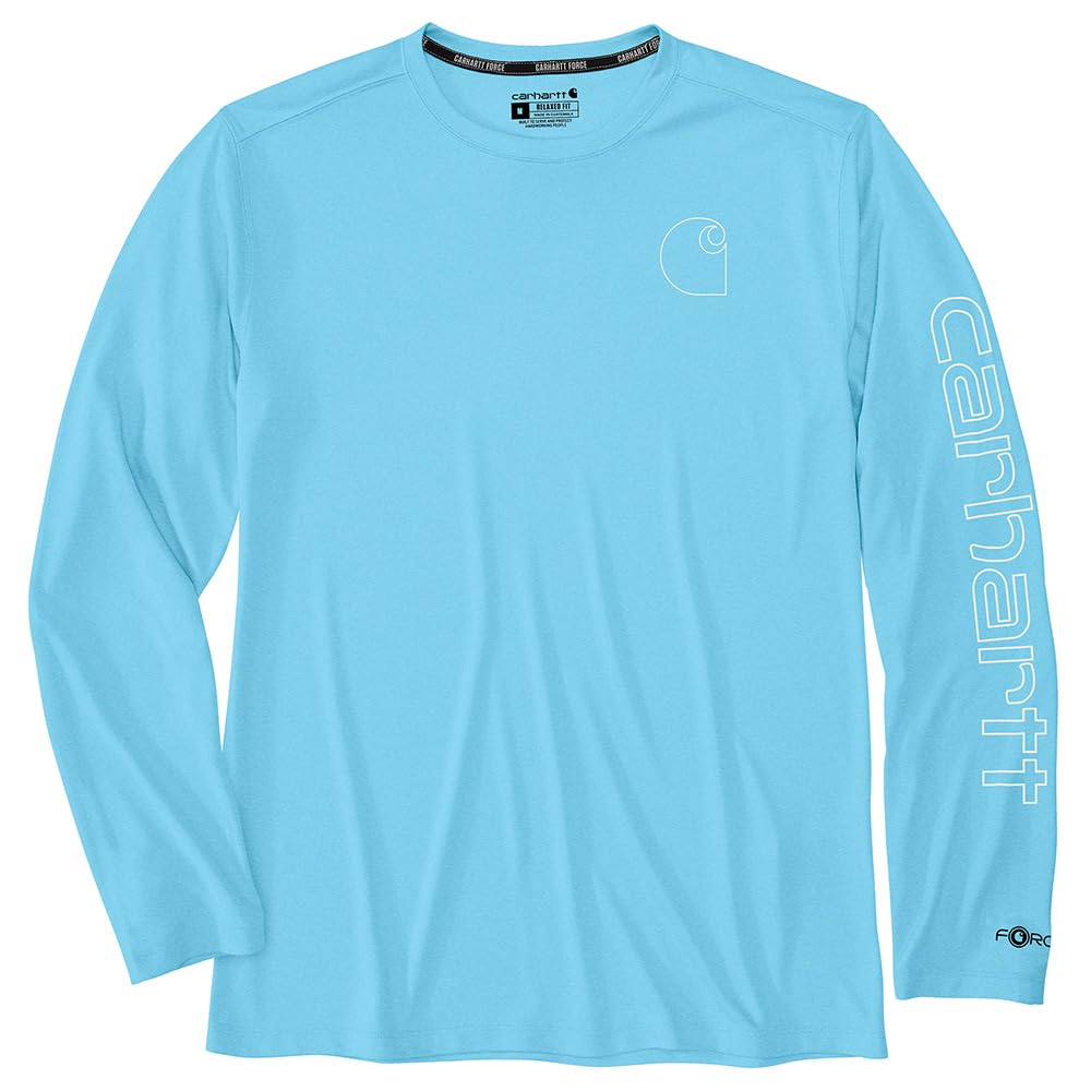 Carhartt Men's Force Sun Defender Lightweight Long-Sleeve Logo Graphic T-Shirt, Blue Gleam Heather, XX-Large