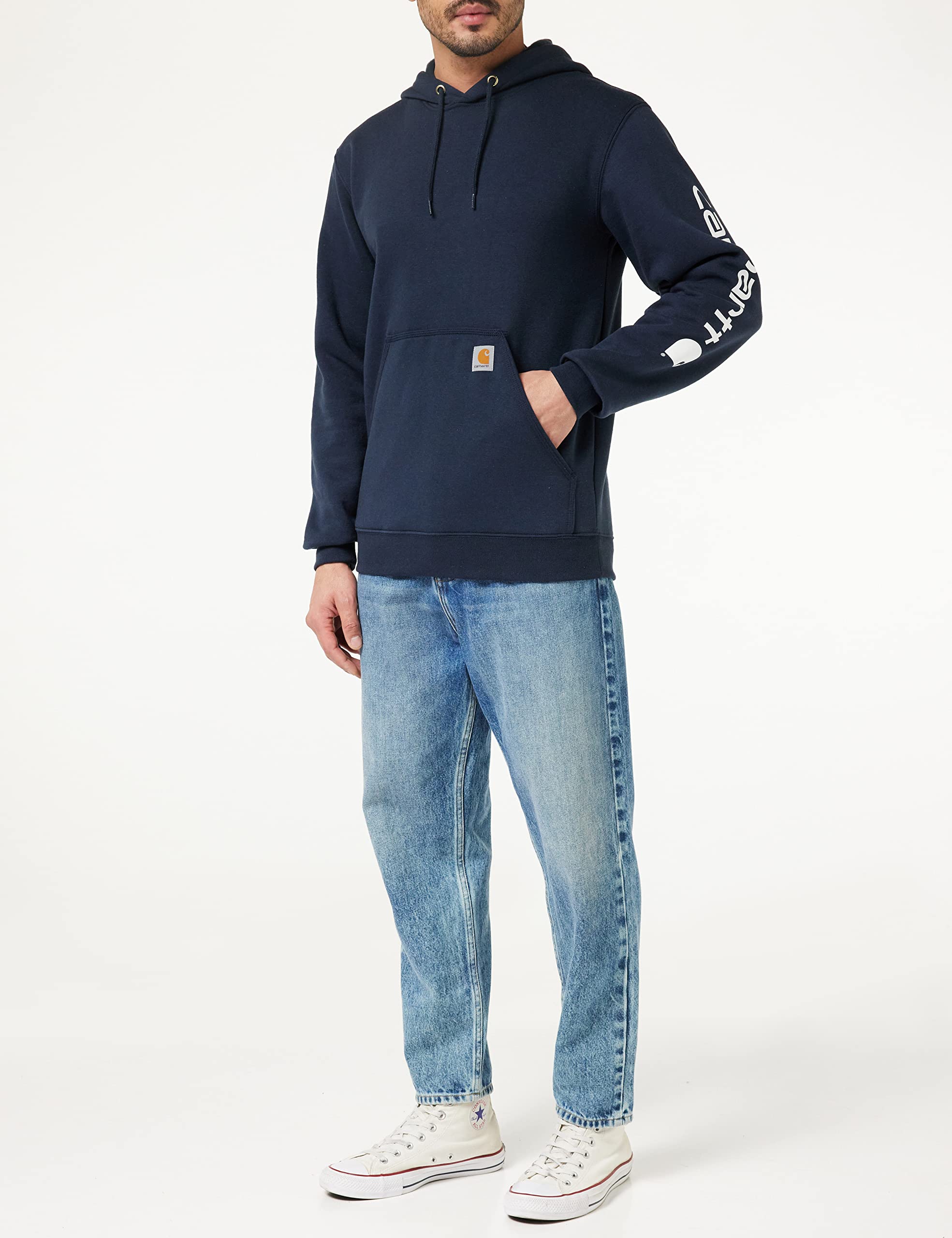 - Carhartt signature logo printed on the sleeve