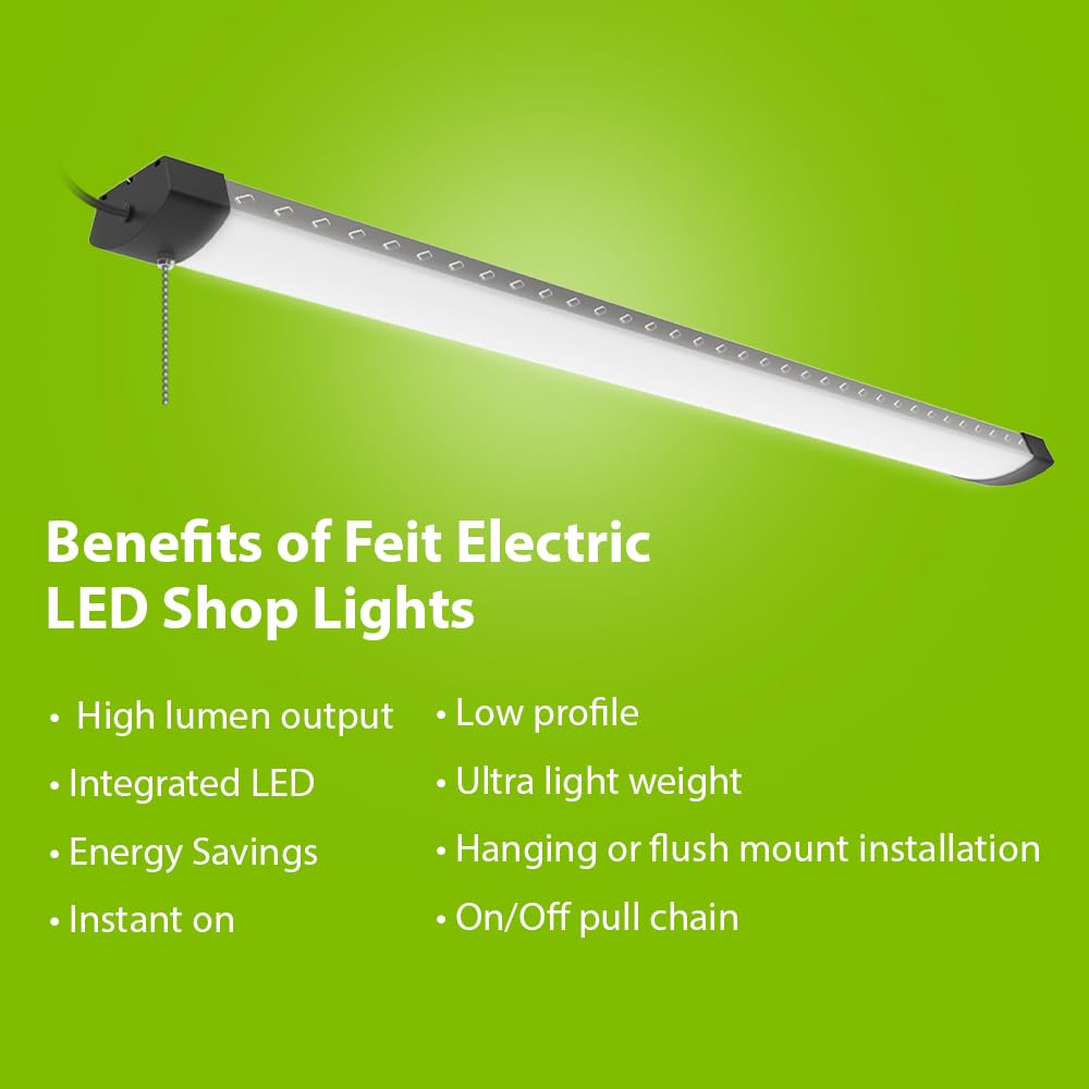 Feit Electric 4ft LED Shop Light, 12,000 Lumens, 5000K Daylight, High Output, Linkable, Hanging/Flush Mount, Ultra-Lightweight, 120W LED Garage & Workshop Lighting, 25,000-Hour Lifespan, SHOP/4/HO/850