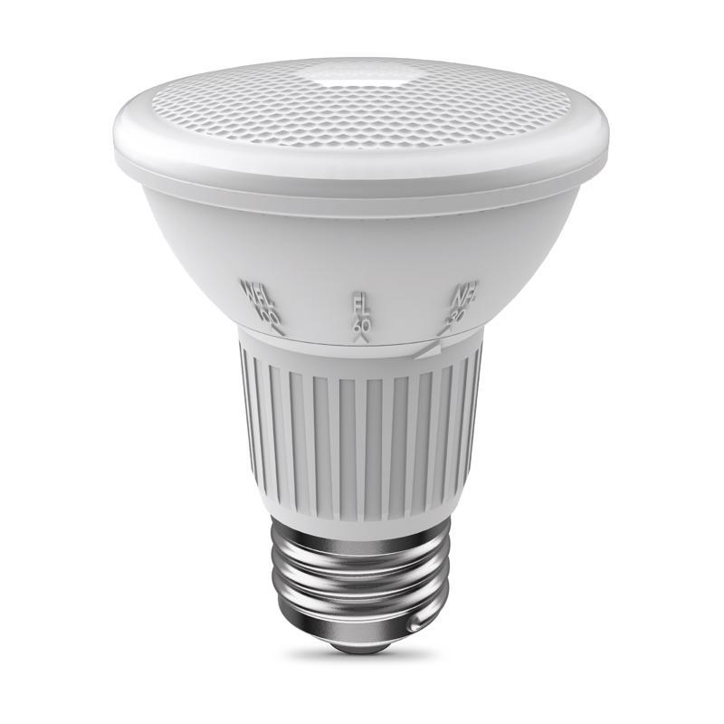The Feit Electric IntelliBulb beam choice LED PAR20 reflector light features an innovative adjustable design so you can get wide or more focused light with just one bulb. Enhance 90+ CRI rating makes colors vibrant and skin tones look more natural all while saving energy and lasting for a decade or more. This high-performance 3000K Bright White bulb is fully dimmable and suitable for indoor use.
