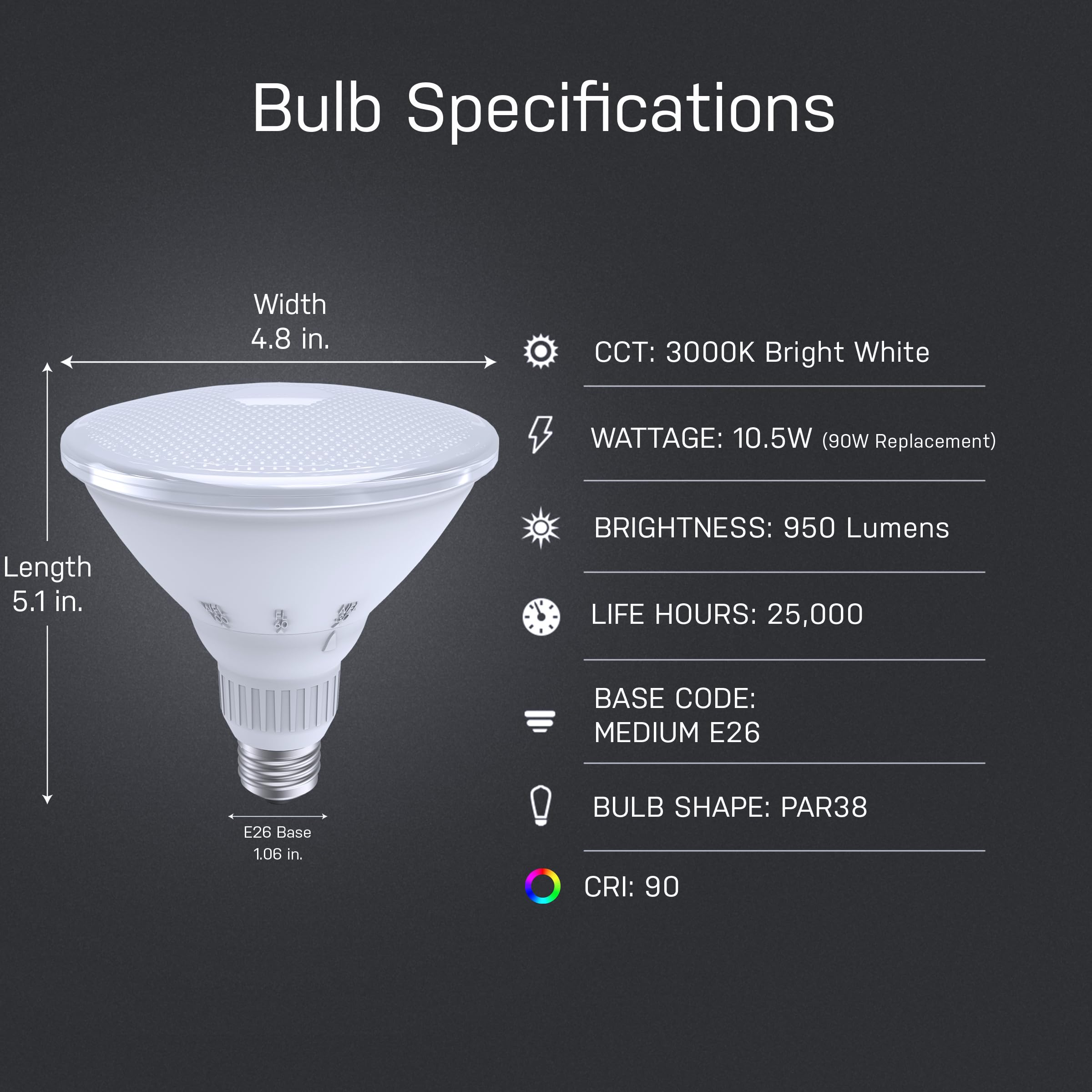 Feit Electric IntelliBulb BeamChoice Reflector LED Bulb, Indoor/Outdoor, PAR38 on E26 Base, 90 CRI, Dimmable, 90-Watt Equivalent, 25K Life Hours, 3000K Bright White – PAR38/ADJ/930CA