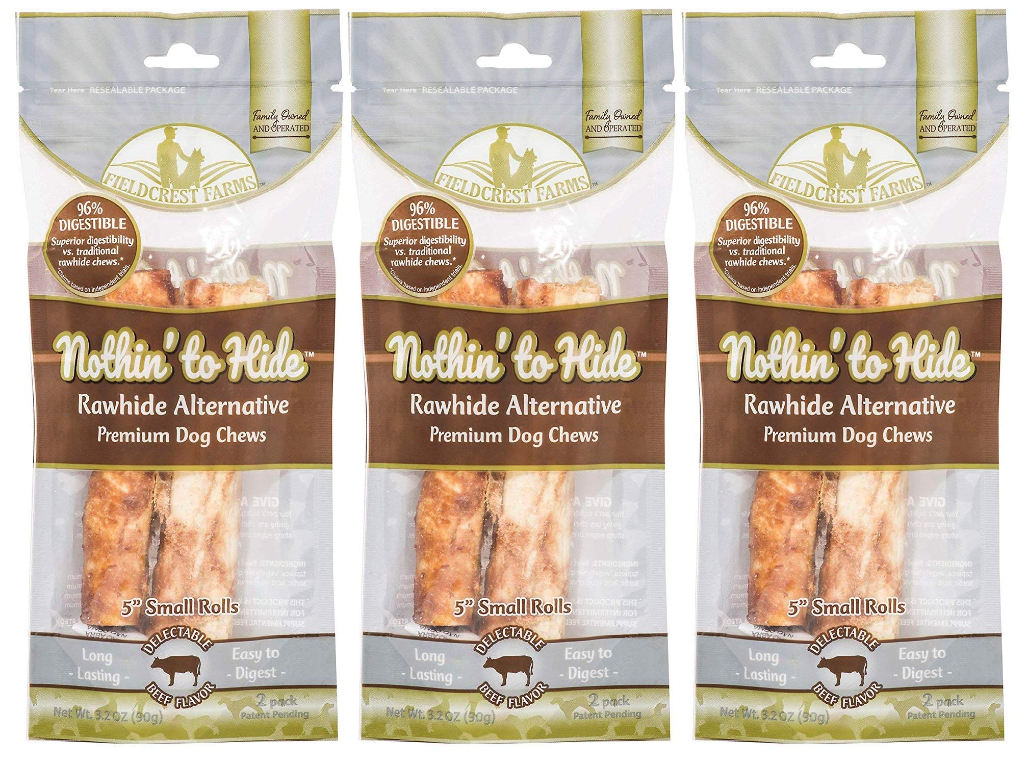 Fieldcrest Farms Nothing to Hide Natural Rawhide Alternative 5'' Rolls for Dogs – 3 Pack (6 Chews) Premium Grade Easily Digestible Chews (Beef)