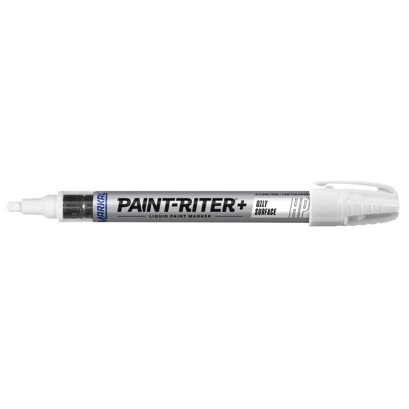 Paint-Riter + Oily Surface is a liquid paint marker developed for superior marking performance on oily and greasy surfaces. The high performance paint penetrates through oils and greases to dry quickly and leave a bold, permanent mark that is wear, weather, and fade-resistant.