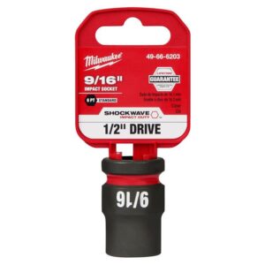 The Milwaukee Shockwave Impact Duty 1/2in Drive 9/16in Standard 6 Point Socket features the boldest, longest-lasting markings and extreme impact durability in high torque applications. The stamped and ink-filled size marking enables an accurate socket selection every time throughout the life of the socket. Engineered with high-strength forged steel for optimized performance in heavy-duty applications, and a non-slip hex geometry prevents fastener rounding. All Shockwave Impact Duty Sockets are backed by meet ASME industry standards.