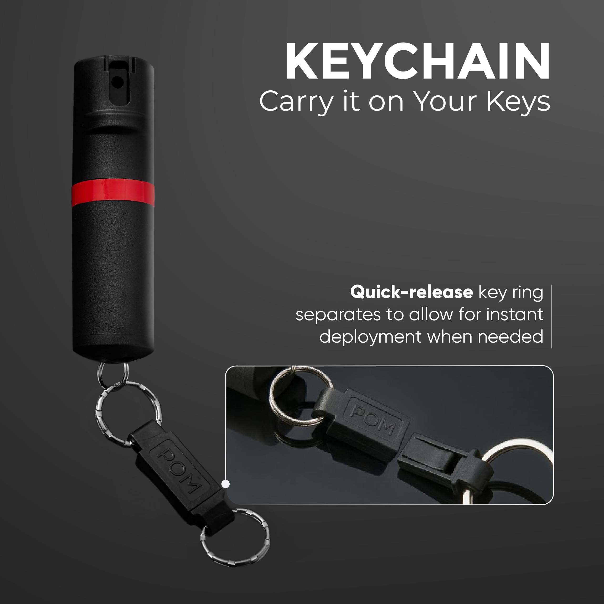 POM Premium Pepper Spray Keychain, Quick Release Access Flip Top Safety, Police Grade OC Formula with UV Marking Dye, 25 Precision Bursts, 10 Foot Effective Range, Made in USA