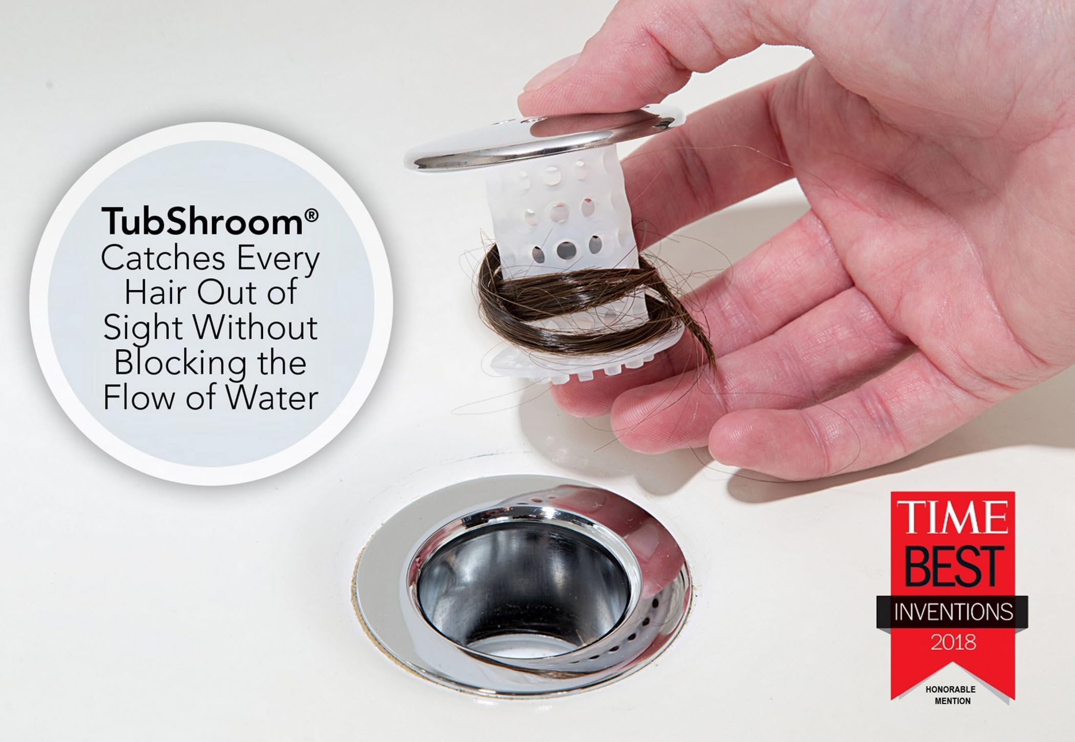 Keep pipes clear with this flexible, silicone hair drain catcher that keeps hairs out of sight, too. Unlike the metal ones you have seen, TubShroom is a plug that fits into the drain, catching hairs beneath the drain before they reach pipes.